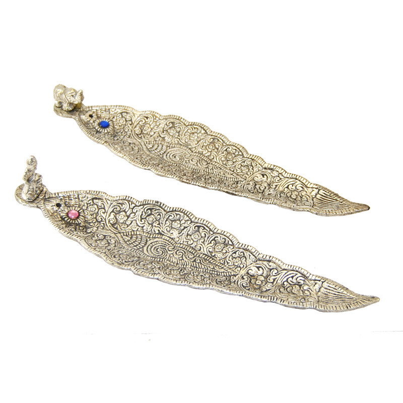 ziemlich Metall Räucherstäbchenhalter mit einem kleinen Buddha Ende. Länge 22 cm.